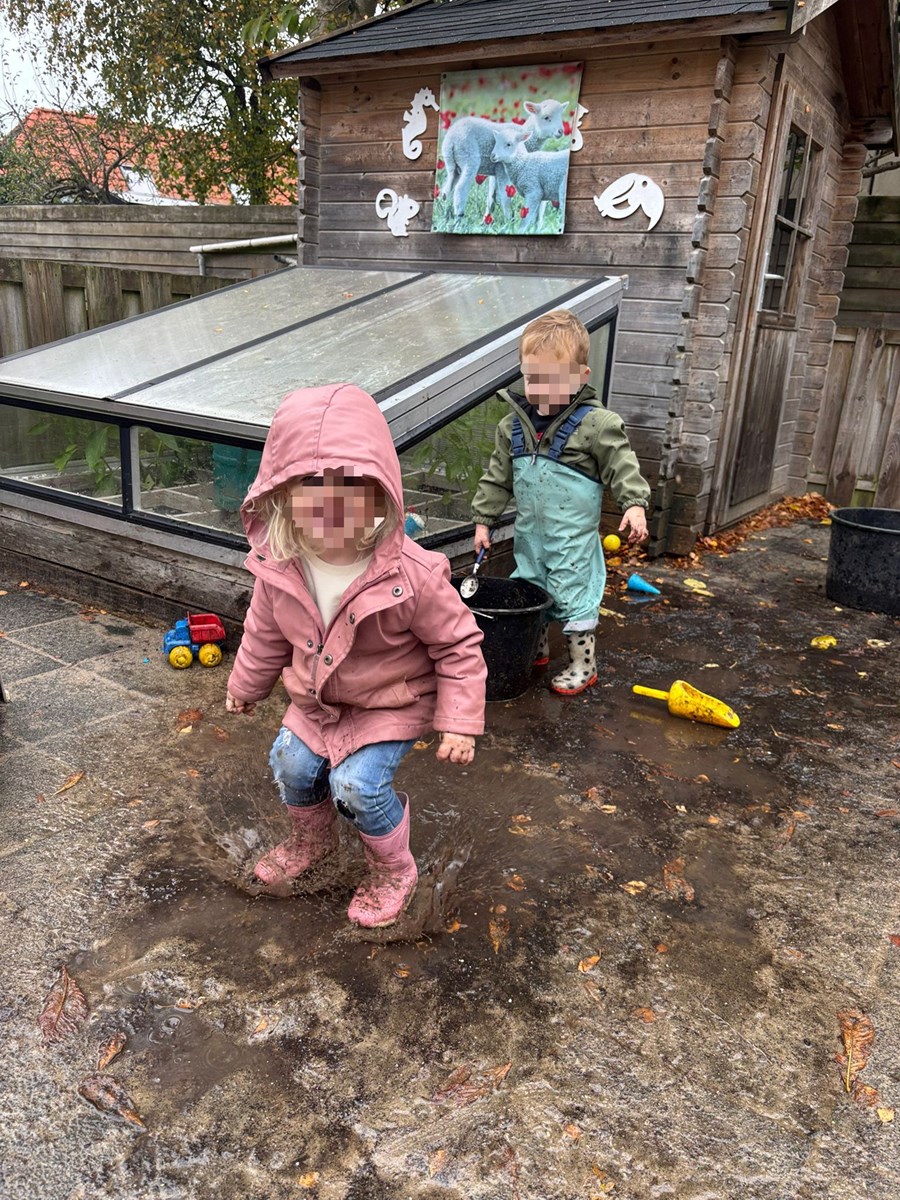 We gingen helemaal los in de modder! Soms een beetje spannend — want het voelt gek en je wordt lekker vies 😄 — maar vooral héérlijk om te ontdekken en te spelen.